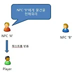 게임을 플레이하다보면, 특히나 MMORPG 장르에서 쉽게 볼 수 있는 퀘스트 중에 하나가 배달 퀘스트다. 내가 테스트하는 게임도 어느 정도 MMORPG적인 요소가 있다보니, 게임 진행 중간중간에 배달 퀘스트가 부여된다. 최근 이와 관련한 이슈 중 개인적으로 이해하기 힘든 사항을 하나 소개하고자 한다. 그림과 같이 플레이어가 NPC "A"에게 가서 NPC "B"에게 물건을 전해주라는 퀘스트를 받는 상황이다. 그런데 테스트 중에 플레이어가 퀘스트를 받자마자 퀘스트 요약창에 해당 퀘스트가 "Completed" 되었다는 메시지가 떴다. 나는 아직 NPC "B"에게 물건을 전해주지 않은 상태에서 퀘스트가 "완료"되었다고 뜨는 것이 잘못된 것이라고 생각하고 이를 BTS에 등록했다. 며칠이 지나자 해당 이슈에 기획팀..